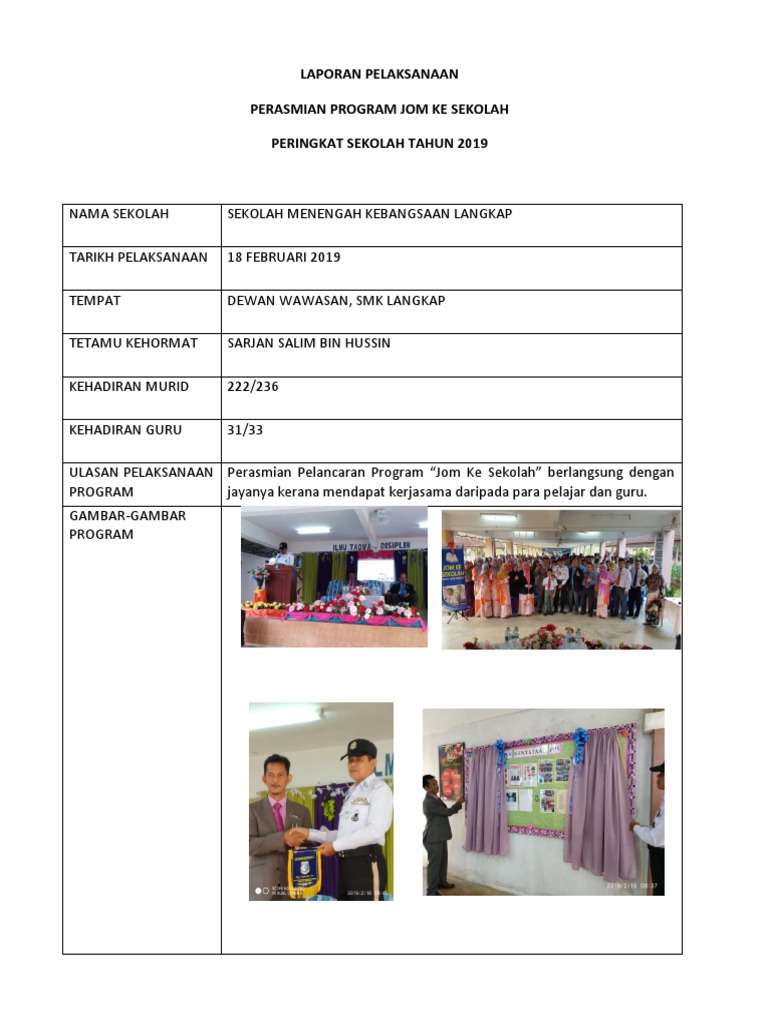 Jun 15 2021 Laporan Program Jom Ke Sekolah 2020. LAPORAN PROGRAM JOM KE SEKOLAH. Laporan pelancaran prorgam jom ke sekolah sk sungoi tuaran tarikh.
