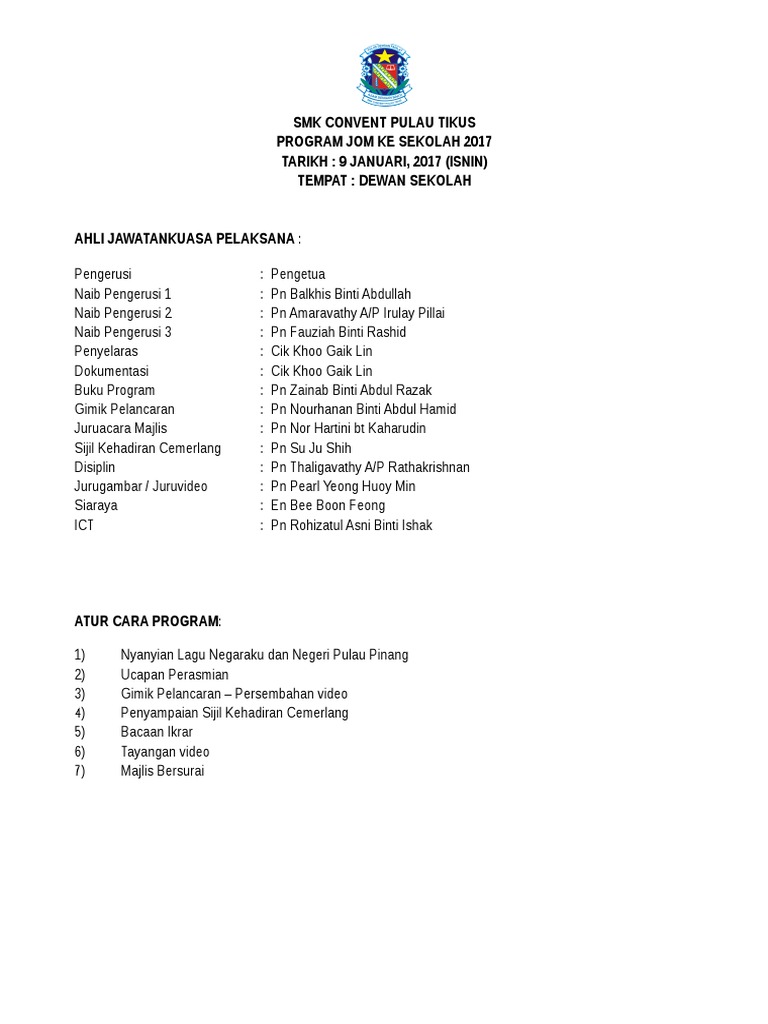 Ajk Aturcara Jom Ke Sekolah 2017